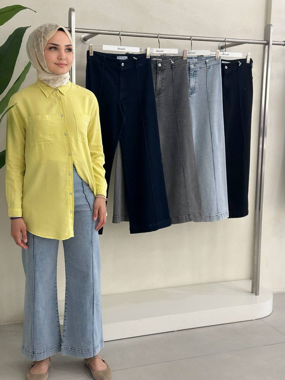 FRONT SEAMED BACK POCKET DENIM TROUSERS